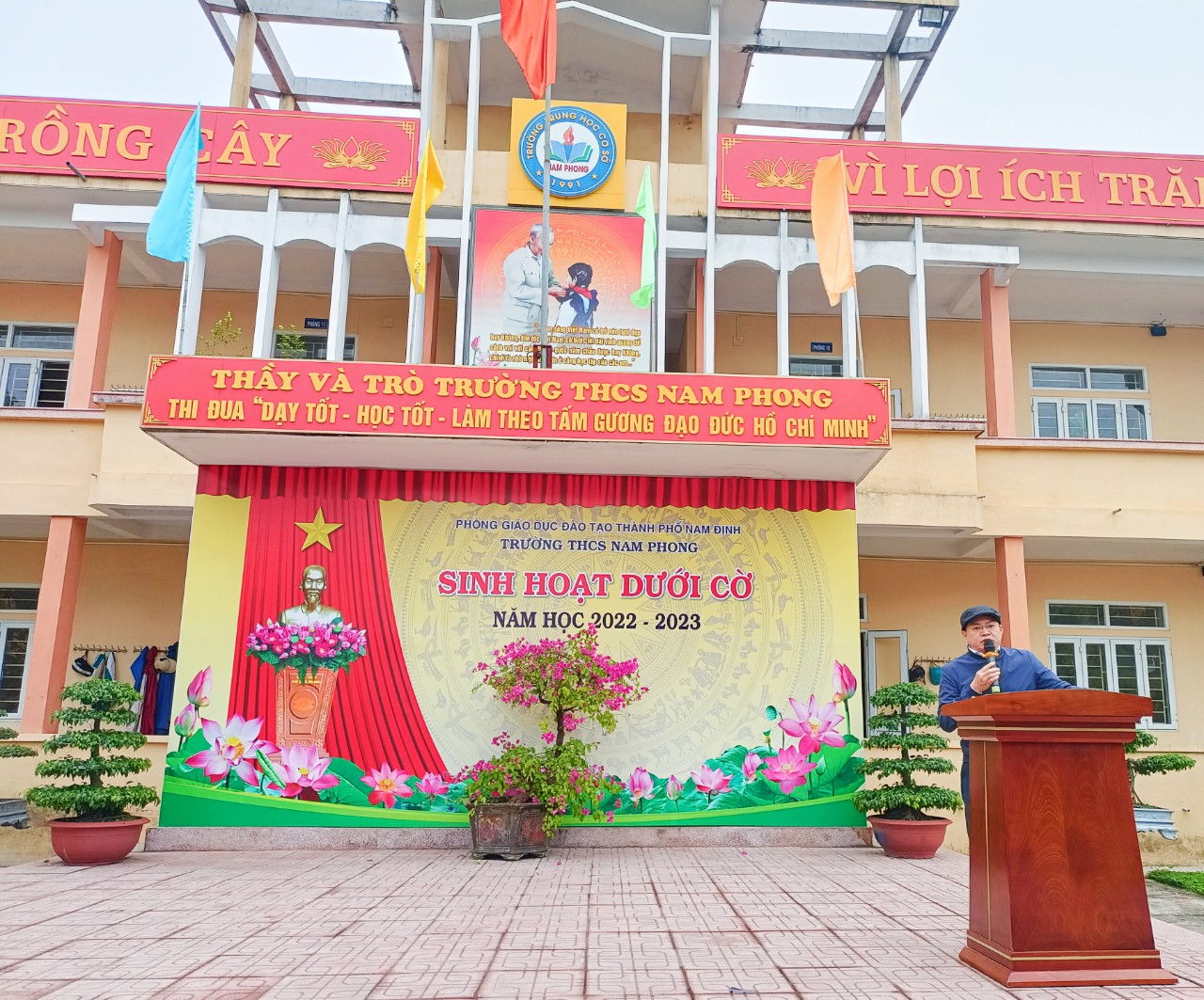 HỨNG KHỞI NGẬP TRÀN TRONG BUỔI SINH HOẠT DƯỚI CỜ ĐẦU TUẦN CỦA THẦY VÀ TRÒ TRƯỜNG THCS NAM PHONG