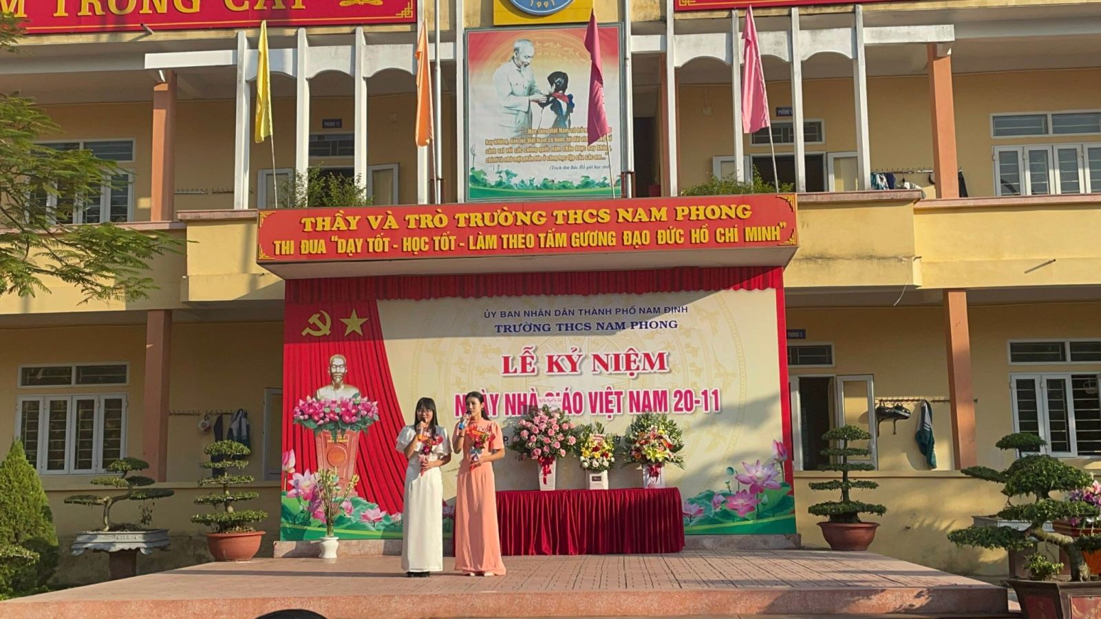 Hoà vào không khí hân hoan đó trường THCS Nam Phong long trọng tổ chức lễ kỉ niêm ngày NHÀ GIÁO VIỆT NAM 20-11 để gửi đến quý thầy cô lời chúc tốt đẹp nhất, với muôn vàn điều tri ân, niềm hạnh phúc, chúc quý thầy/cô luôn cháy lên một ngọn lửa nhiệt thành và vững tay chèo để từng ngày đưa các thế hệ học trò đến bến bờ thành công.